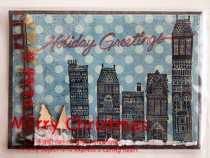 クリスマスの町の風景をスタンプでシックに表現されています:)